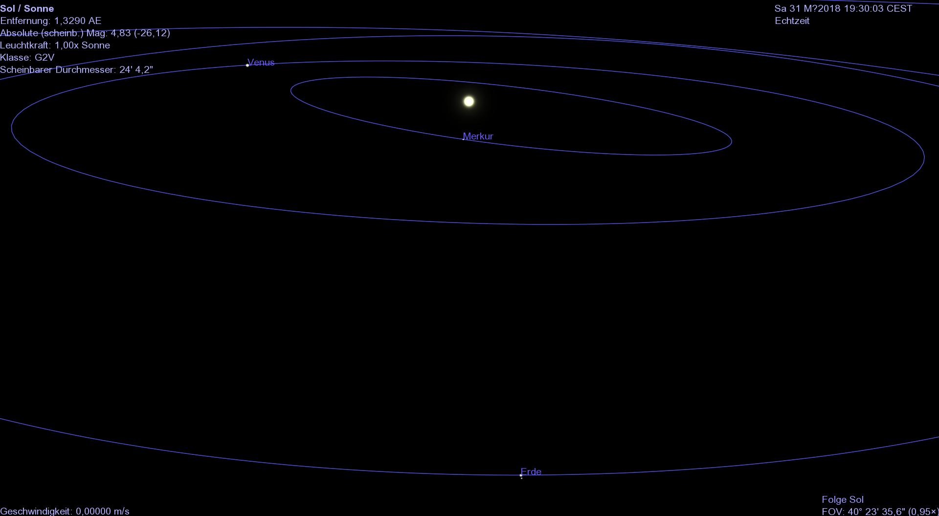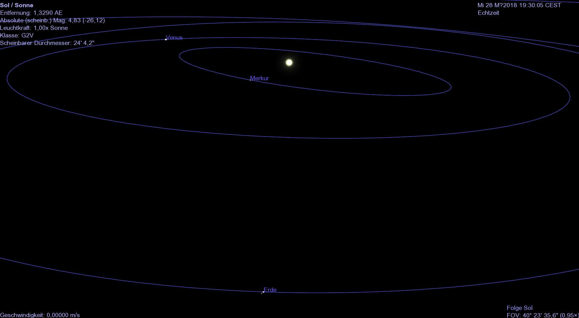 gesehen werden, je nachdem auf welcher Seite der Sonne er sich gerade
