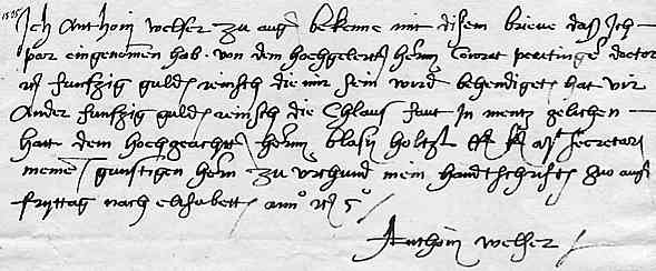 Mit eigener Hand bestätigt der damalige Chef des größten Handels- und Bankenkonzerns der Welt, Anton Welser anno 1505 dem damals 40jährigen bekannten Humanisten Konrad Peutinger den Erhalt von 50 Gulden (Kaufkraft heute ca. 10.000 Mark): "Ich Anthoni Welser zu Augsburg bekenne mit diesem Briefe, dass ich bar eingenommen hab von dem hochgelehrten Herrn Conrat Peutinger, Doctor..." Dafür musste weder Peutinger eine Depotgebühr bezahlen noch gar der Bankier Welser einen Zinssatz! Ob Anton Welser mit den bei ihm eingelegten Depot "arbeitete" oder es tatsächlich nur "sicher verwahrte", wissen wir in diesem Falle freilich nicht. Jedenfalls arbeiteten die frühen Bankiers und ihre Banken (und dies als Privatbanquiers bis weit ins 19. Jh., teilweise sogar bis in die unmittelbare Gegenwart) zunächst vornehmlich mit dem eigenen "Kapital" (von "caput" = Hauptgut - das Kapital war selbstverständlich Edelmetall), wie aus diesem Beispiel aus einem Rechenbuch, Passau 1554 hervorgeht: